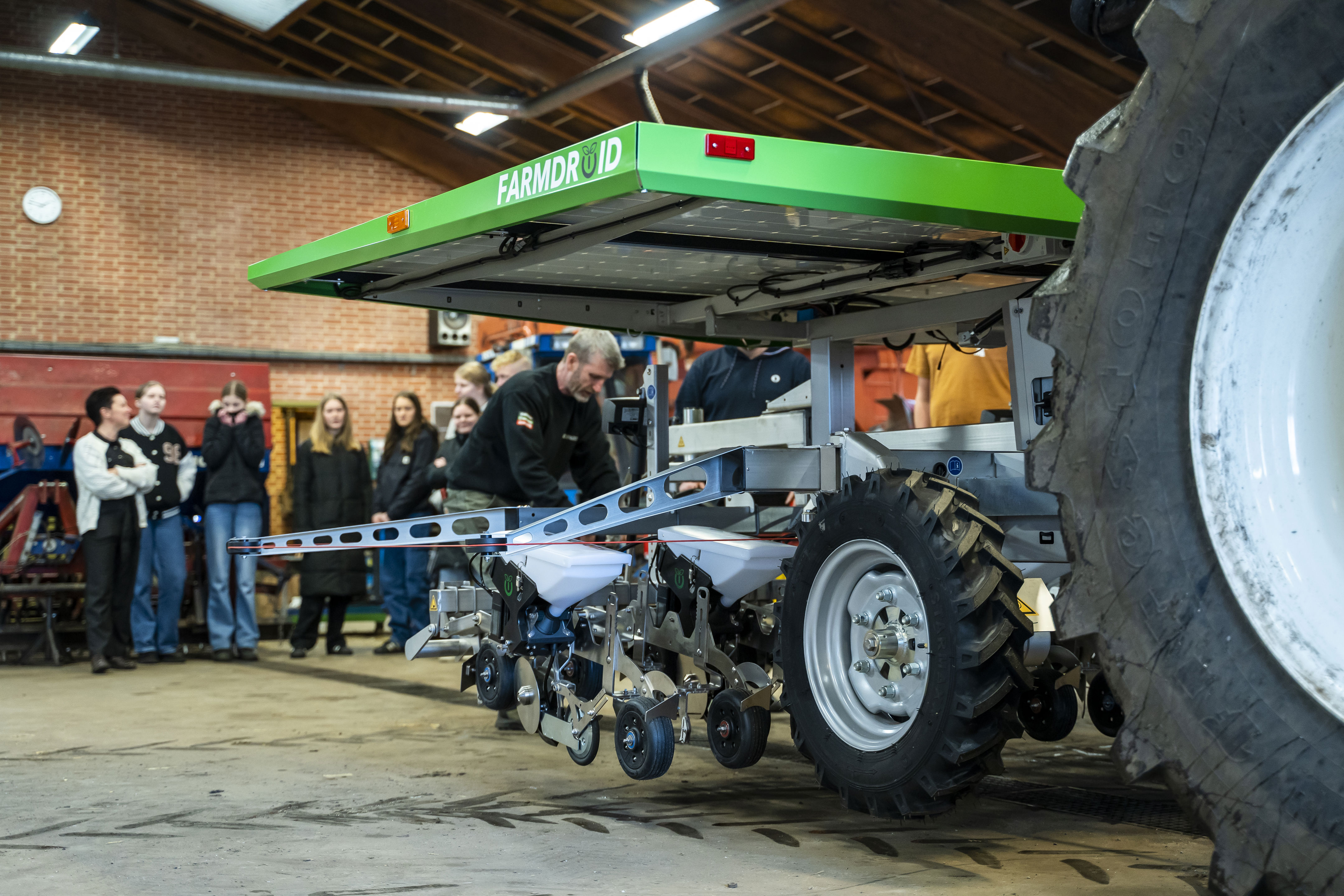 Vi er ret glade for vores markrobot. Den kører på solenergi og er med til at lære os, hvordan landbruget kan reducere CO2-udledningen i fremtiden. Vi har for nylig også købt en elektrisk minilæsser og en traktorsimulator. Vores egne landbrugsmaskiner passer vi selv på. Hvordan skal vi ellers vide, hvordan de virker – og om de virker? Sikkerhed og maskinteknik er selvfølgelig på skemaet på Herningsholm Landbrugsskole.